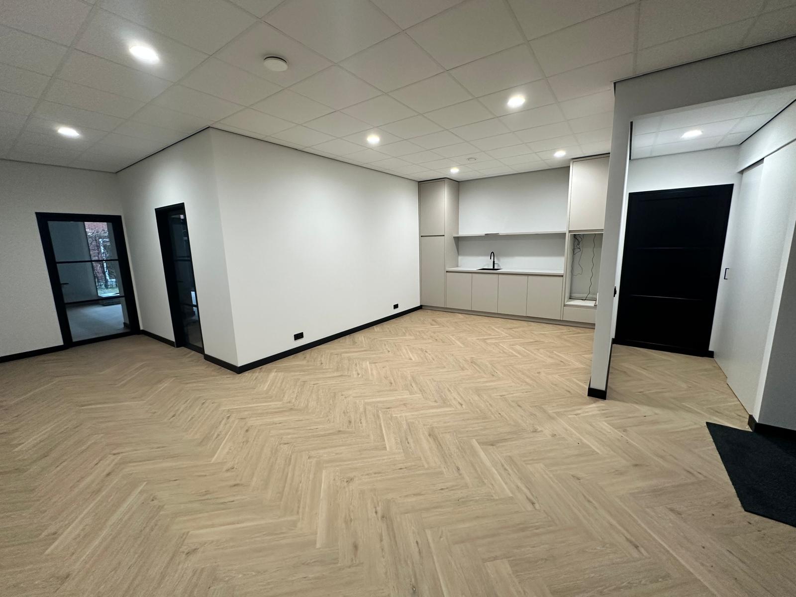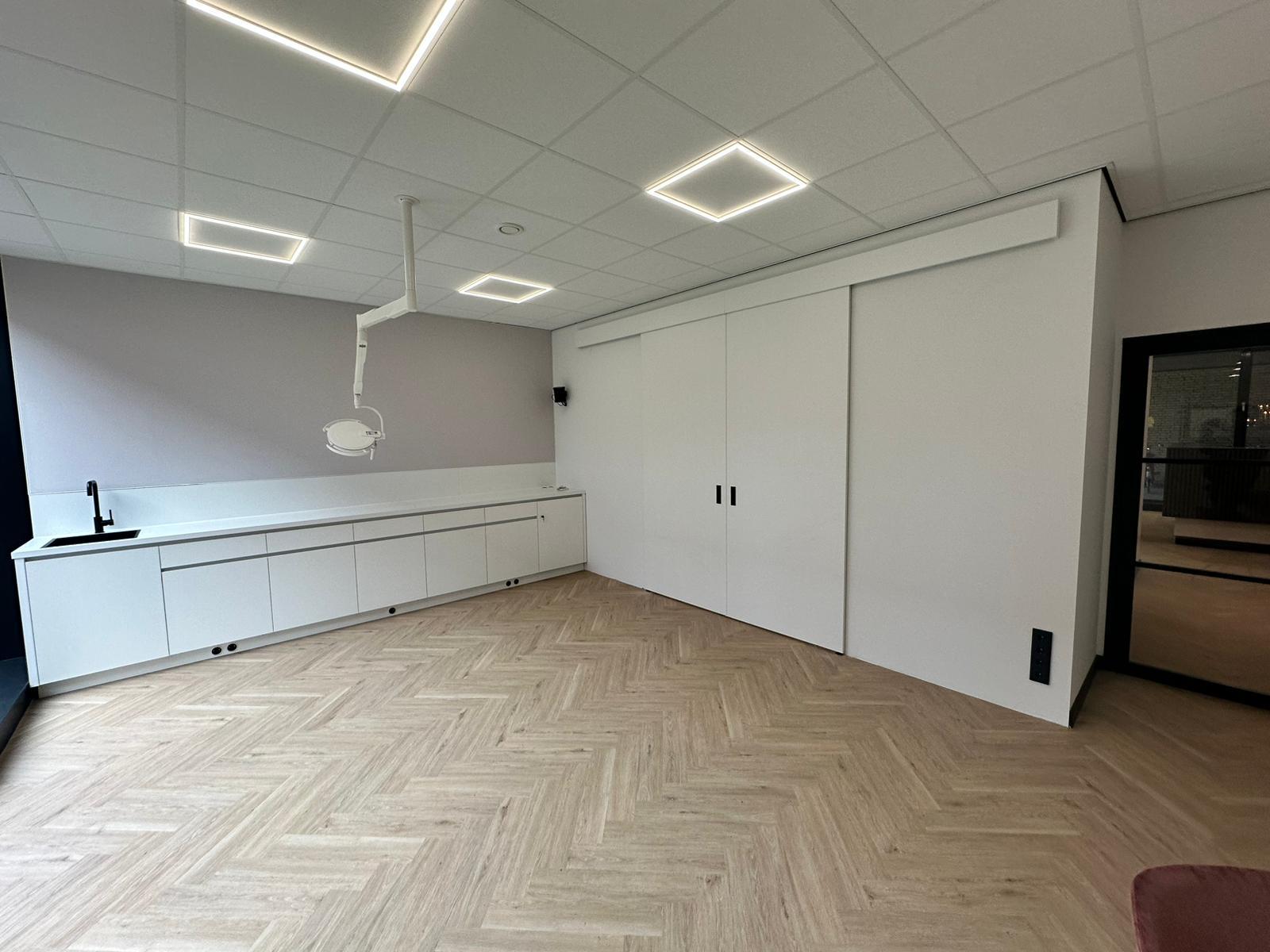 De gehele ruimte voorzien van een systeemplafond met ledverlichting.